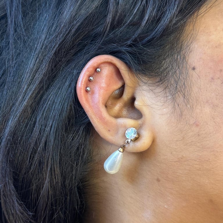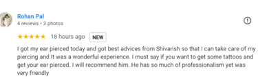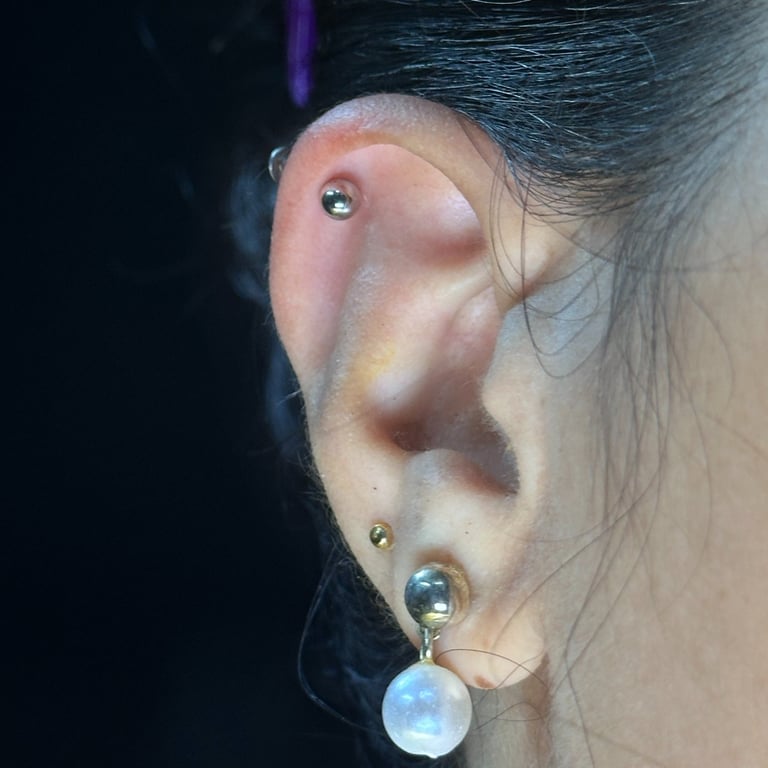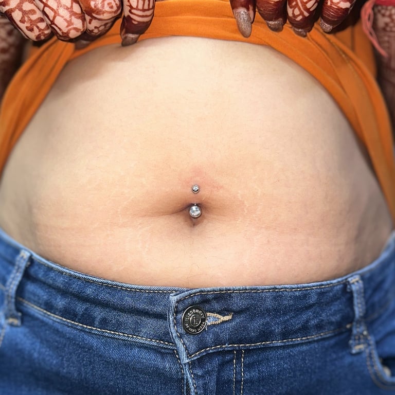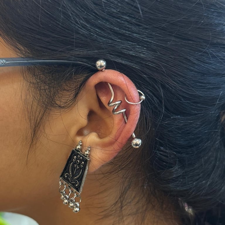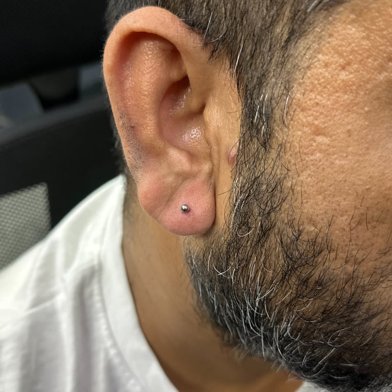 Offering safe and stylish body piercings — including Ear Lobe, Helix/Cartilage, Nose, Belly, and Eyebrow piercings — all done with precision, perfect alignment, and premium hygiene.