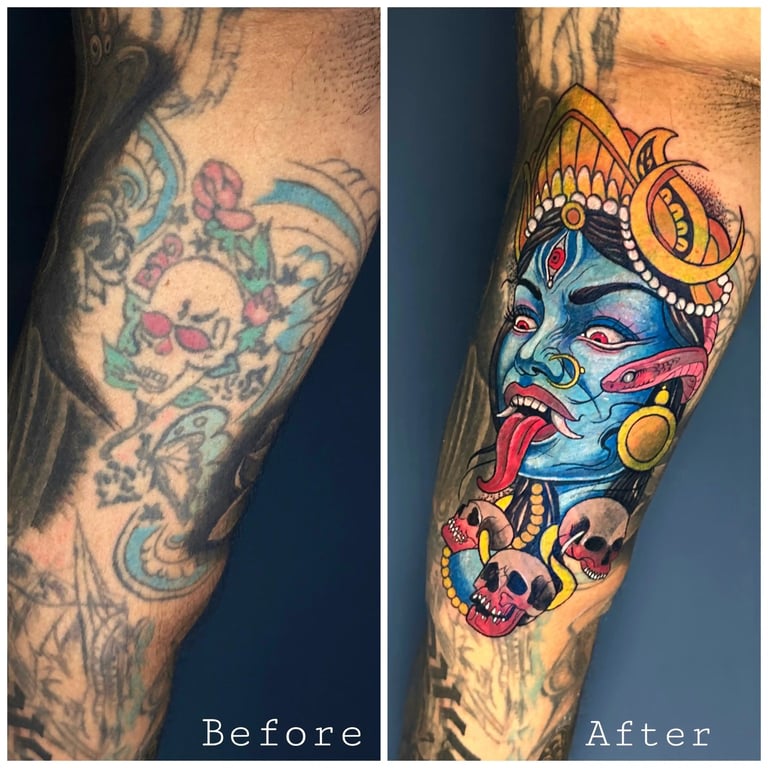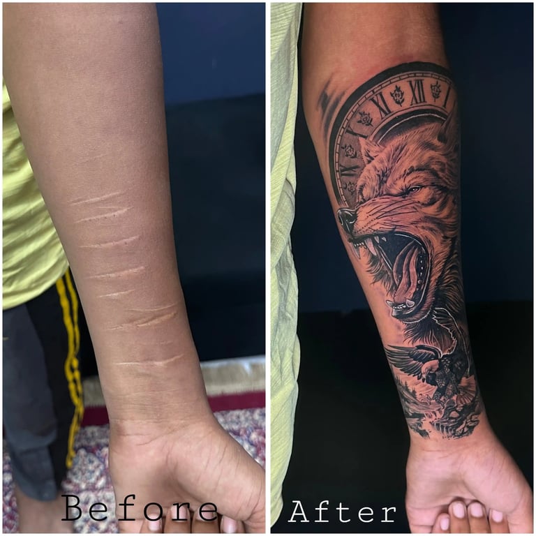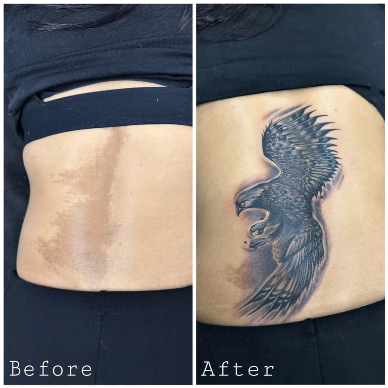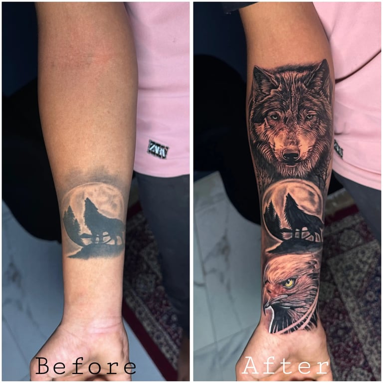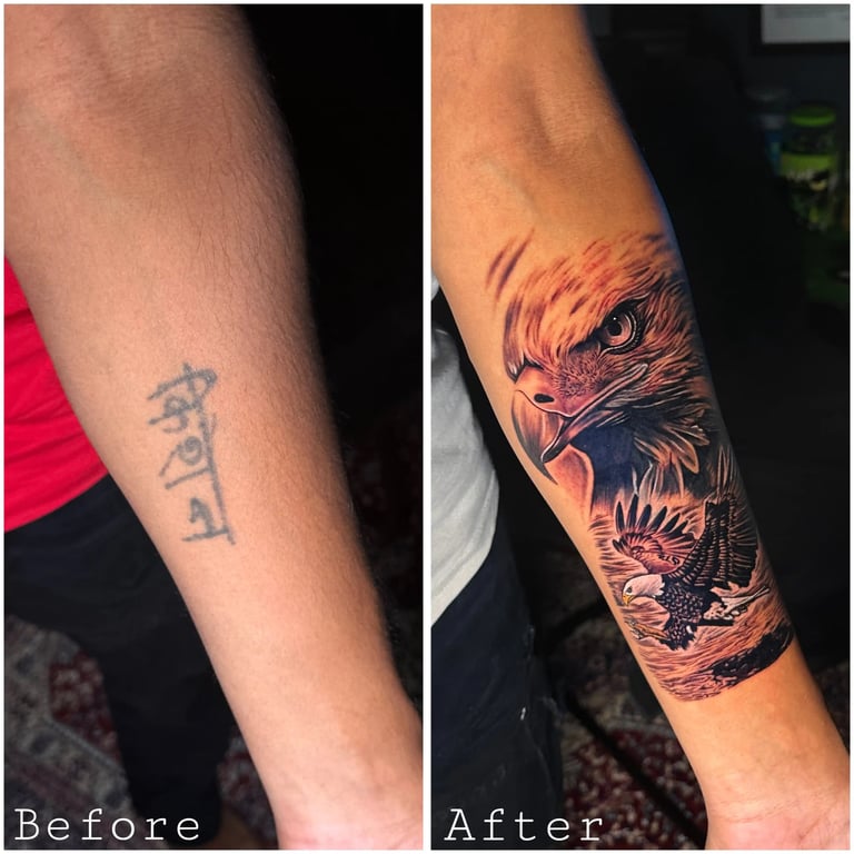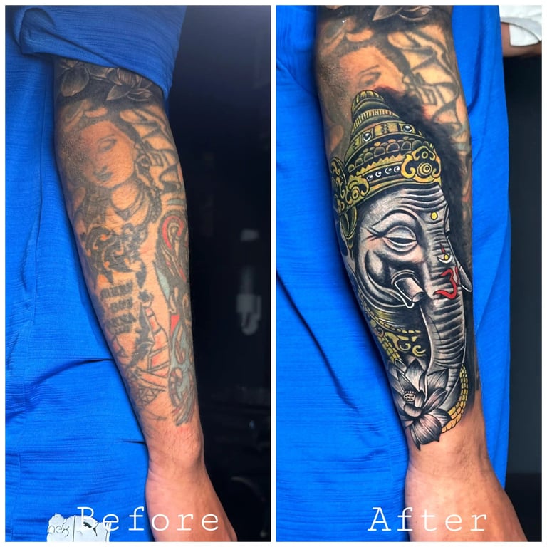 Professional cover-ups that transform faded or unwanted tattoos into fresh masterpieces.
